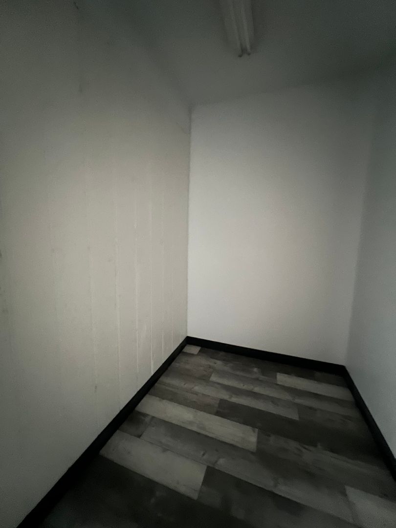 Commercial space for rent in a business area. Features 3 large rooms, 1 smaller room, a bathroom, and a bright main area with windows.