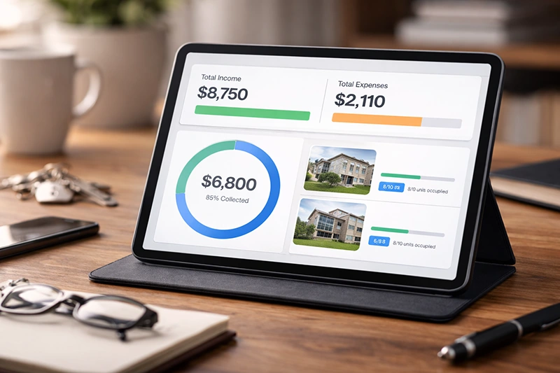 Track occupancy rates, ROI, and property performance over time.
